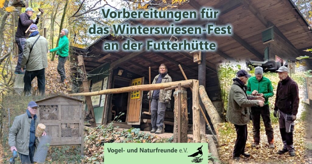 Der kühle Novembermorgen schreckte uns nicht davon ab, am vergangenen Wochenende gleich an zwei Stellen tätig zu werden. Rund um das Biotop Winterswiesen standen turnusmäßige Pflege- und Mäharbeiten auf dem Programm, während parallel an der benachbarten Futterhütte/Informationshütte „Eichelhäher“ die Vorbereitungen für das bevorstehende „Hüttenfest Winterswiesen“ am 22.11. liefen. Schon nach kurzer Zeit war niemandem mehr kalt, die Bewegung an der frischen Luft sorgte für Wärme und die sichtbaren Fortschritte für gute Stimmung.
